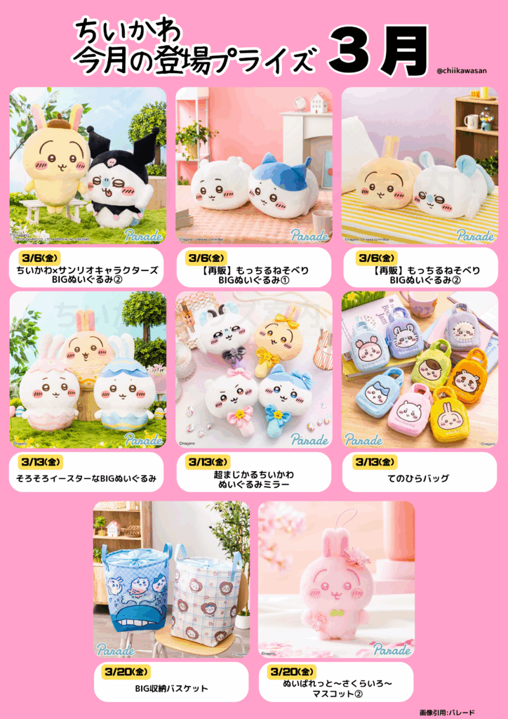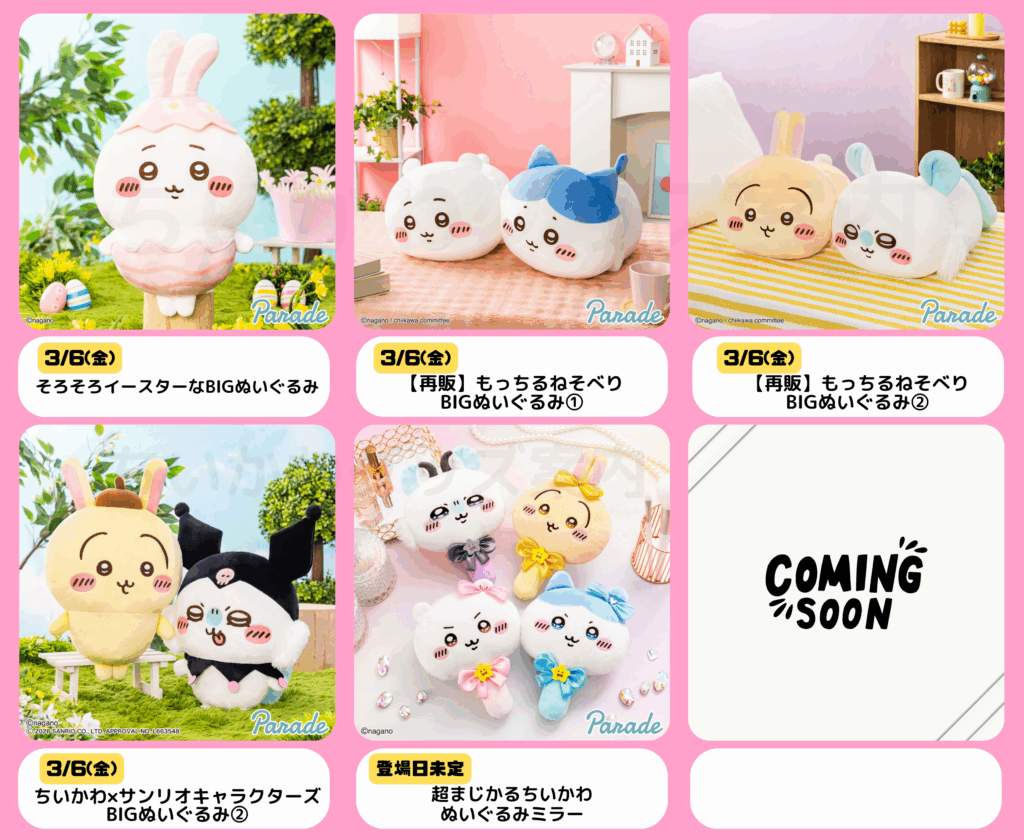 【2026年3月】ちいかわプライズまとめ|UFOキャッチャー登場予定一覧
