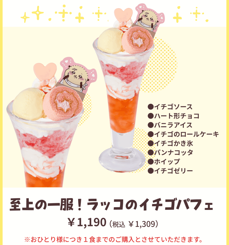 本編にも登場するイチゴパフェが、ココス流に再現されたメニューです。